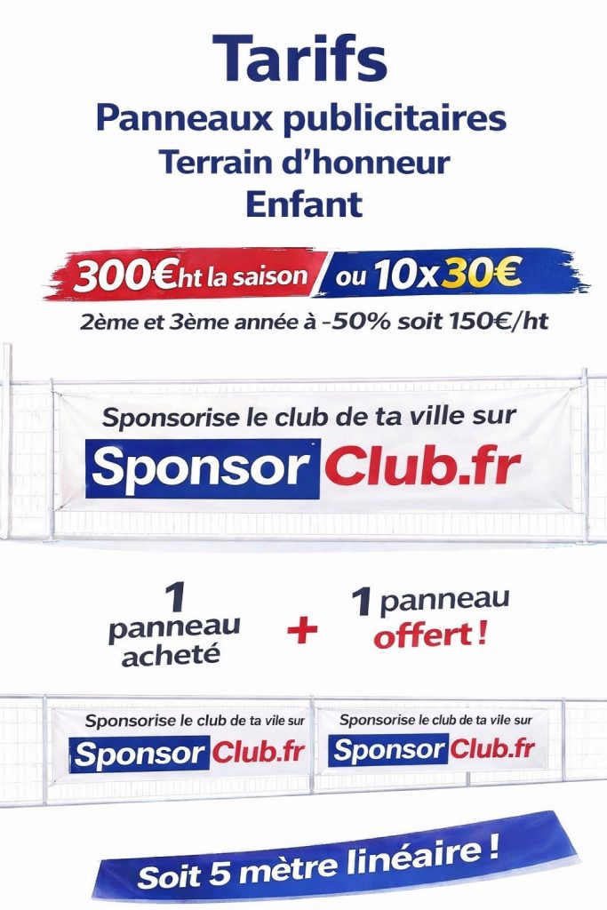 Avec Sponsor-Club, les entreprises locales bénéficient d’un emplacement stratégique pour développer leur notoriété locale tout en soutenant un club de football amateur.